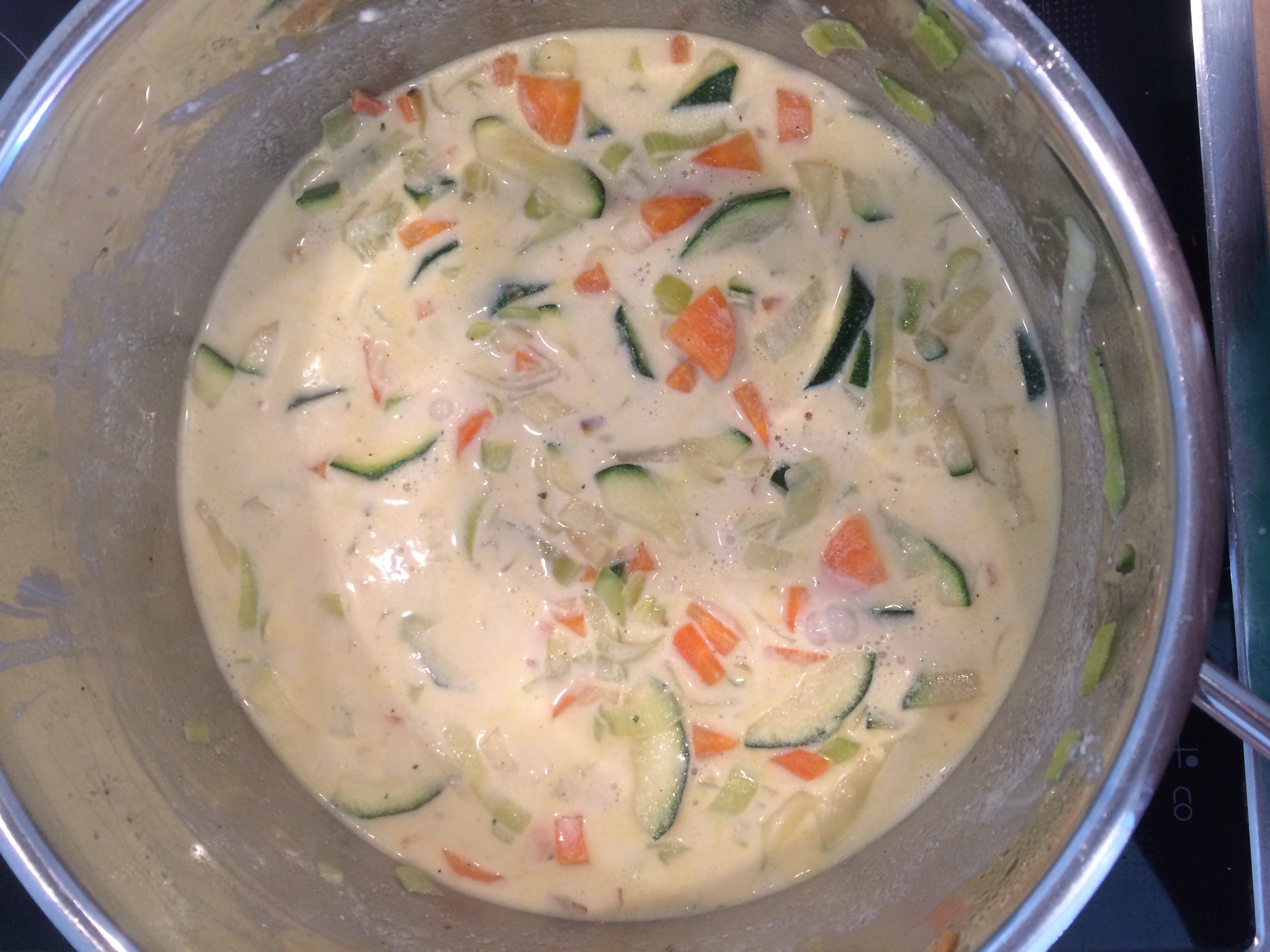 Gemüse-Parmesan-Soße mit Vollkornnudeln